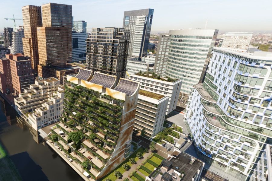 Voor een locatie op de Zuidas hebben we het team van dok architecten ondersteund bij de ontwikkeling van een woonmilieu met geborgenheid en gezamenlijkheid. In een gebied dat voornamelijk door kantoren wordt gedomineerd ontstonden groene terrassen en gemeenschappelijke interieurs en exterieurs waar netwerken zich spontaan en laagdrempelig kunnen ontwikkelen. Op het dak wordt hemelwater op om het groen van water te kunnen voorzien. De opdracht betrof conceptontwikkeling en het opstellen van het verhaal. De tender is gewonnen.